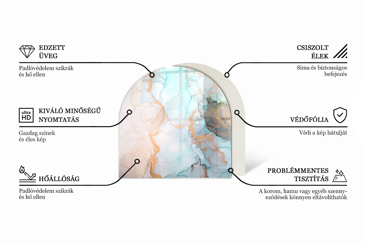 Az edzett üveg alkalmazása kiváló hőállóságot és mechanikai ellenállást biztosít, ami hosszú élettartamot eredményez. Az alátétet Lengyelországban tervezték és gyártották, nagy gondossággal minden részletre, gyártói garanciával és rövid gyártási határidővel.